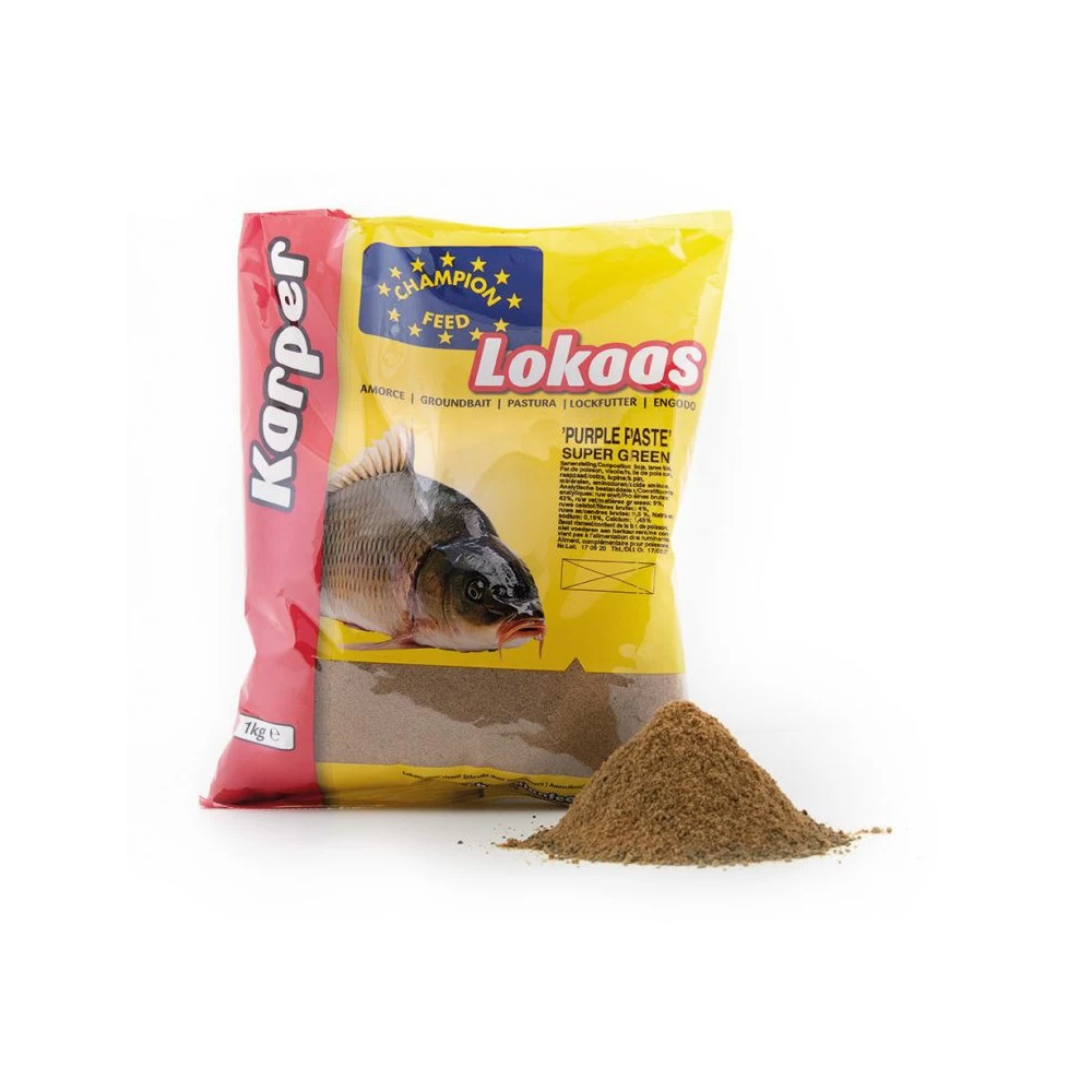 Champion Feed Purple Paste Super Green, ons nieuwe assortiment aasdeeg, ‘Purple Paste’, is, zoals de naam al aangeeft, deels samengesteld uit de gerenommeerde ‘Purple Pellets’. Aan de hand van de beschikbare smaken en kleuren in ons assortiment stelden we dit aasdeeg samen. Het gemeenschappelijke kenmerk ervan is dat de bevochtiging zeer eenvoudig, snel en heel efficiënt gebeurt.