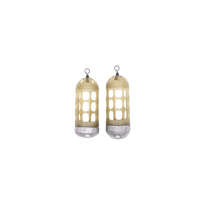 Guru Caged Window Feeder Medium 30 gr + 40 gr, deze zijn speciaal ontworpen voor het nauwkeurig voeren van partikels en grondvoer op verschillende afstanden. Het โOpen Cageโ ontwerp van deze Caged Window Feeder zorgt er voor dat voer en aas sneller vrij zal komen dan bij de standaard X-Change Window Feeder. Het aerodynamische ontwerp zorgt voor perfecte werp eigenschappen in zelfs de meest winderige situaties. Geschikt voor vele verschillende voer en aassoorten zoals maden, casters, wormen, hennep en pellets. De Caged Window Feeders laten een attractief spoor in de verschillende waterlagen achter tijdens het afzinken dankzij het open ontwerp, zodat de basis van het voer en aas pas op de bodem los komt van de Caged Window Feeder. Het X-Change systeem maakt de Feeders enorm veelzijdig en het gewicht kan dan ook gemakkelijk en snel worden aangepast naargelang de situatie.