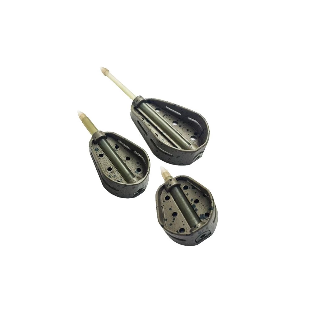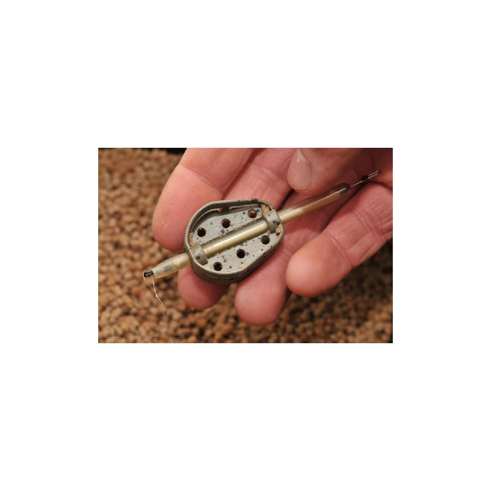 Guru Hybrid Feeder Inline Medium 32 gr, deze nieuwe Hybrid Method feeders van Guru hebben opzicht heel wat weg van de reeds bestaande methods feeders. Ze zijn daar en tegen compleet verschillend van elkaar. Deze nieuwe Hybrid feeder is volledig van Zink gemaakt wat beter voor het milieu en nagenoeg onverwoestbaar is en steeds meer een grote rol gaat spelen in de visserij. Door de opstaande randen van deze Hybrid Inline feeders is het malletje overbodig geworden. Men kan met gemak de pellets of het grondvoer in de Guru Hybrid Inline feeders drukken. De opstaande randen zorgen voor meer houvast tijdens het afzinken. De openingen aan de onderzijde en zijkanten zijn er voor gemaakt om het voer eenmaal op de bodem snel genoeg los te laten. Deze feeders worden standaard inline geleverd maar zijn ook te combineren met het X-Safe Systeem door simpelweg de tube te verwisselen.