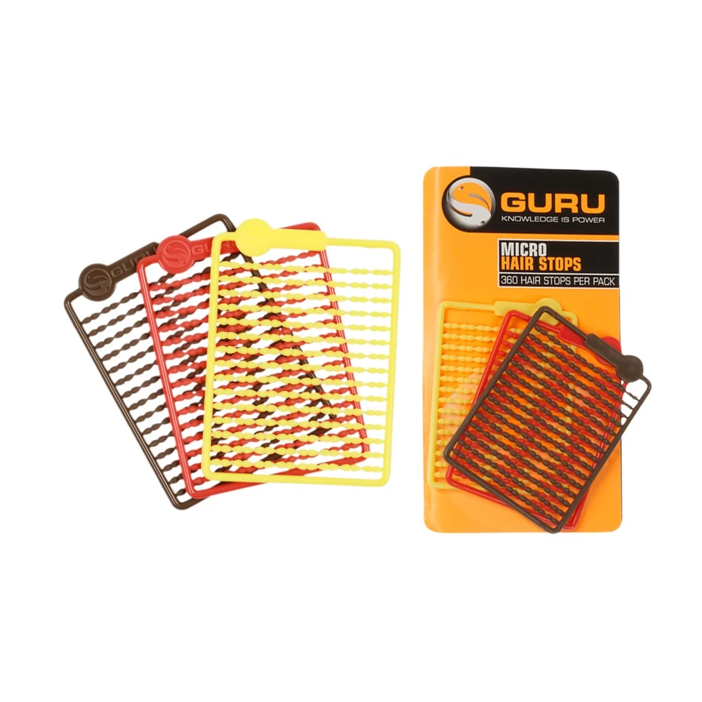 Guru Micro Hair Stops, dit zijn kleine stops en hebben op korte tijd nogal aardig wat fans opgebouwd. Ze zijn verkrijgbaar in gemengde verpakkingen dat bruin, rood en geel stopt omvatten. Zodat u deze aan de aaskleur kunt aanpassen om dressuur te doorbreken bij de vis.