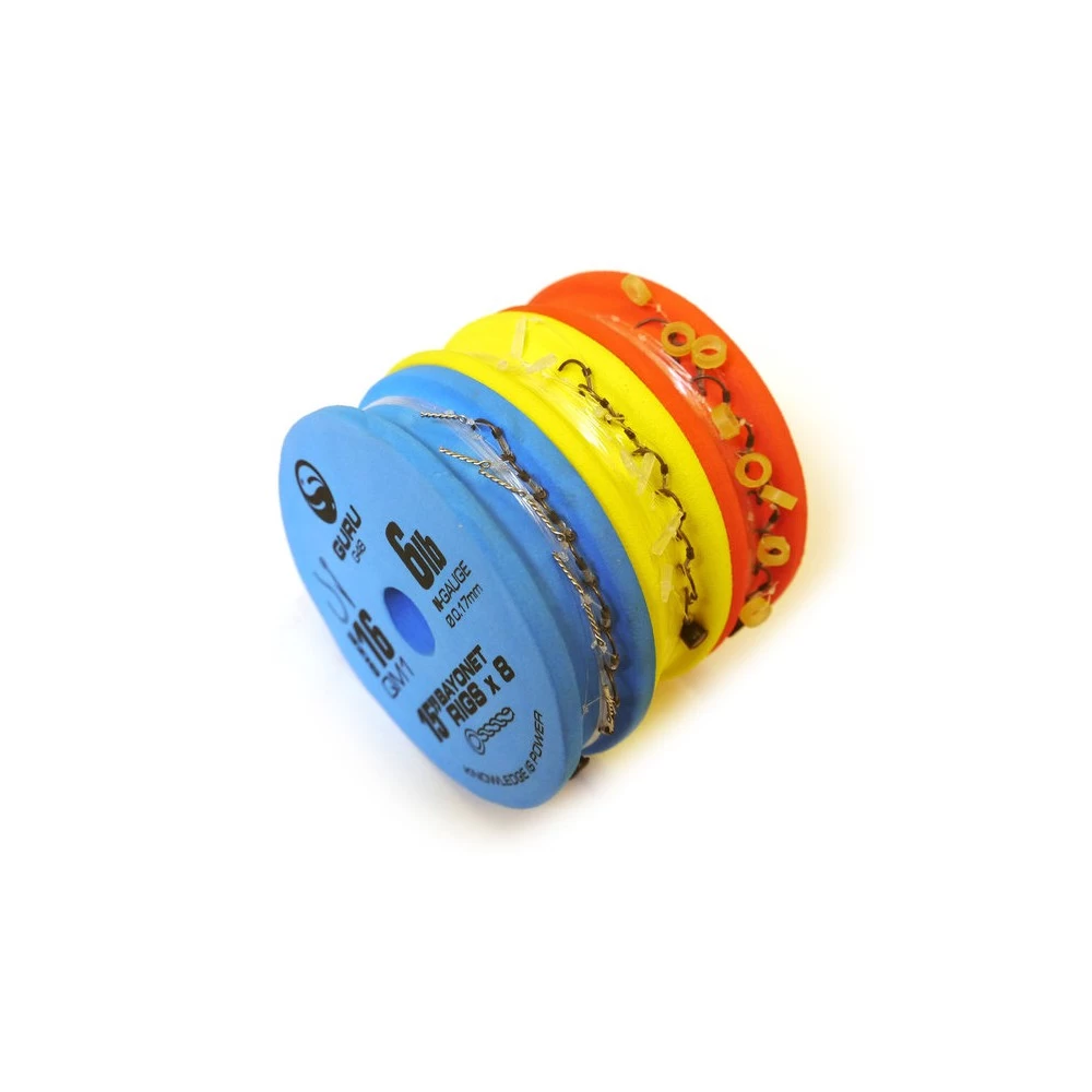 Guru QM1 Bayonet Ready Rigs 15” Size 12, zijn ontwikkeld voor de visserij met een leadclip of voor gebruik met een normale Cagefeeder – voerkorf. Deze 38 cm lange onderlijn is geknoopt van Guru N – Gauge en is voorzien van een Bayonets welke perfect te gebruiken is voor het vissen met mais, mini boilie’s, softies, wormen etc. De onderlijn is geknoopt met 1 van de meest gebruikte haken in de wedstrijdwereld namelijk de Guru QM1. De onderlijnen worden geleverd op Eva Foam Spools welke perfect passen in de Guru Rigbox, door de kleur codering grijp je nooit mis en heb je meteen de juiste spoel bij de hand. Elke onderlijn is voorzien van een Bayonets.Â
