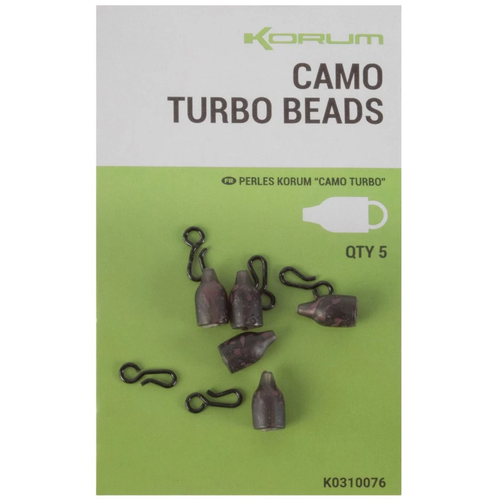 Korum Camo Turbo Beads, zijn ideaal voor het snel wisselen van onderlijnen. De onderlijn kan aan de metalen clip bevestigd worden, door de rubber bead over de metalen clip te schuiven kan de onderlijn geen kant meer op.