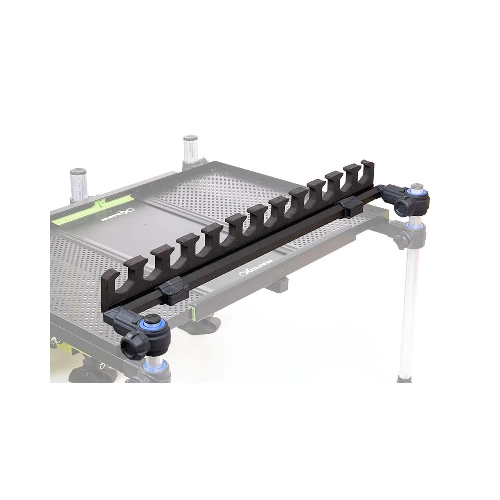 Matrix 3D-R Extending 12 Kit Roost Bar, deze 3D-R Extending 12 Kit Roost Bar is speciaal ontworpen voor maximaal 12 topkits. Special gevormd EVA foam, zodat de kits stevig blijven liggen en voorzien van 2 quick release knuckles. Te combineren met onze Extending Side Trays, meervoudige bevestigingswijzen. De Matrix 3D- R Seatbox accessoires passen op ronde 25mm, 30mm en 36mm poten.