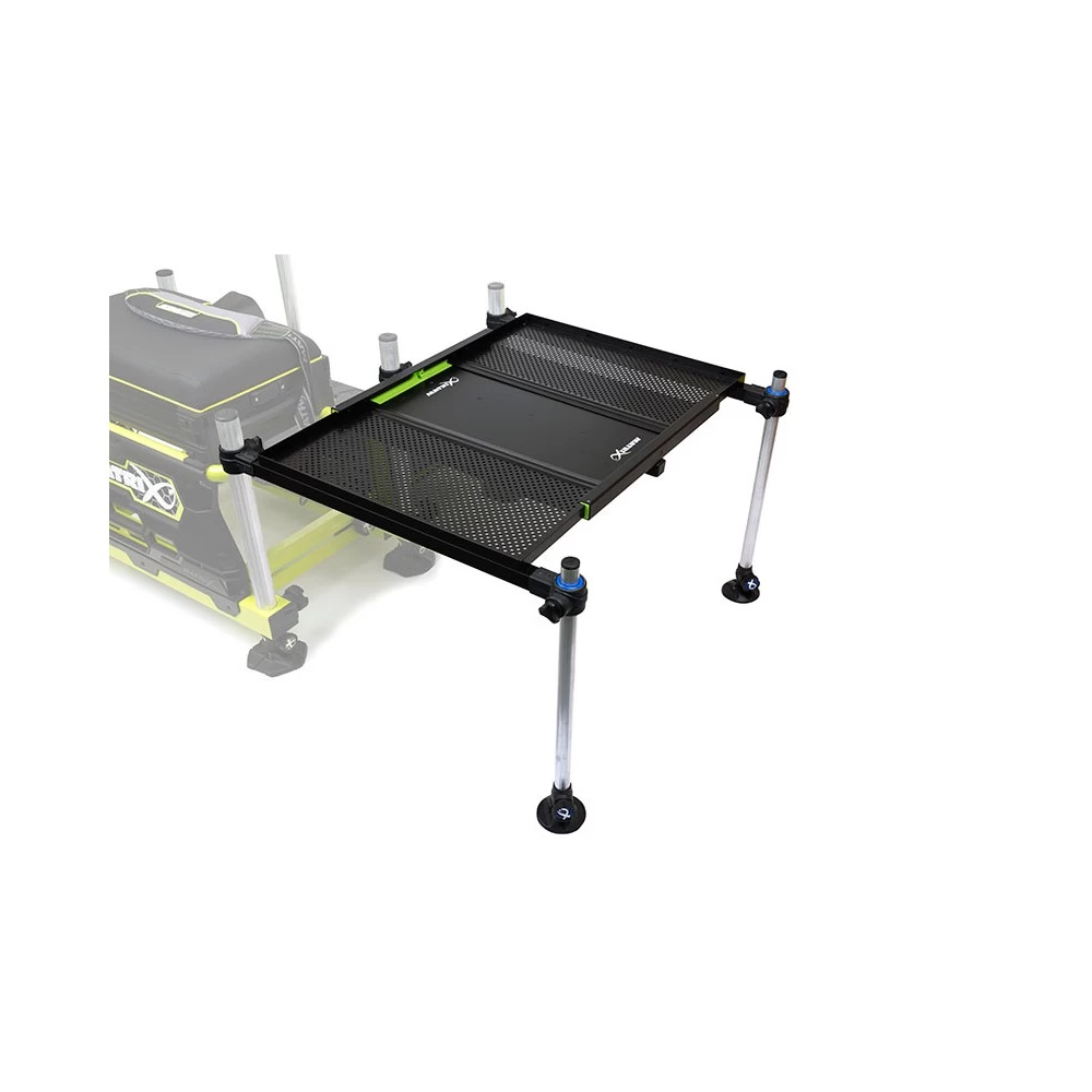 Matrix 3D XL Extendable Side Tray Inc. Inserts, is makkelijk aan uw zitkist te bevestigen. Lichtgewicht aluminium constructie. Geleverd met 2 telescopische 25mm support poten. 3D fittingen op alle poten: passen op ronde 25mm, 30mm en 36mm poten. Ruimte genoeg voor 12 stuks 3.3pt bait boxen. Geperforeerd mesh, zodat gemorst voer zich niet ophoopt. De 3D Rigid Side Tray & Cover van Matrix past op 20, 25 en 36mm poten.