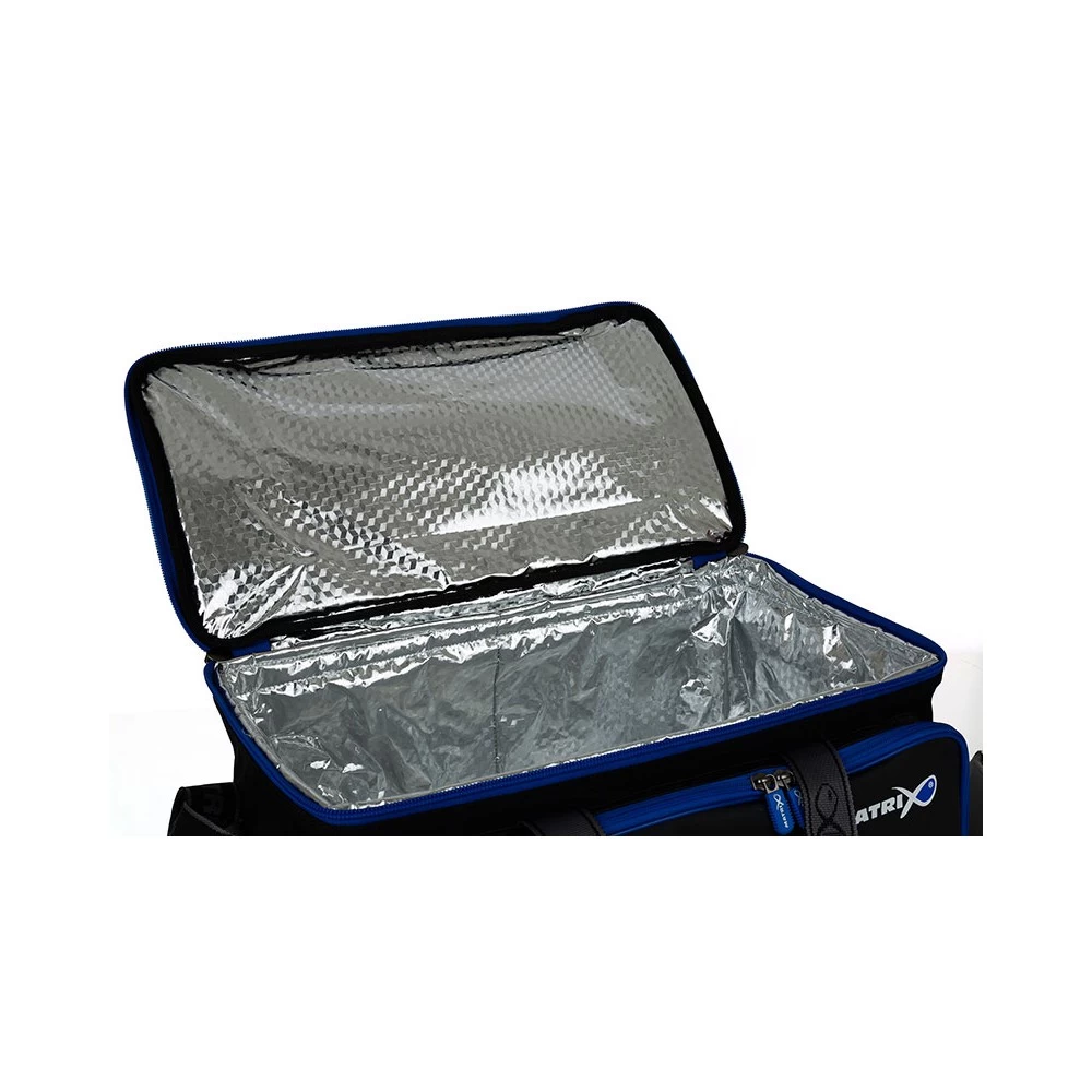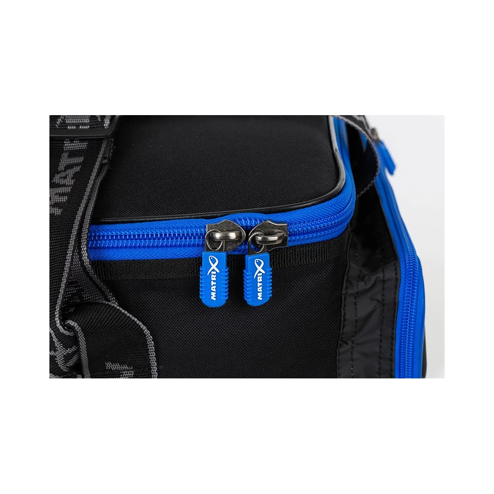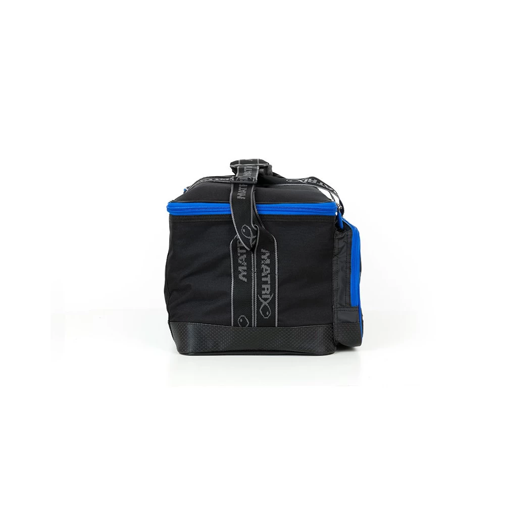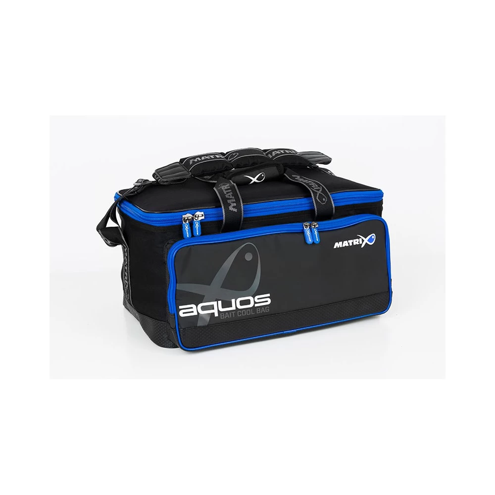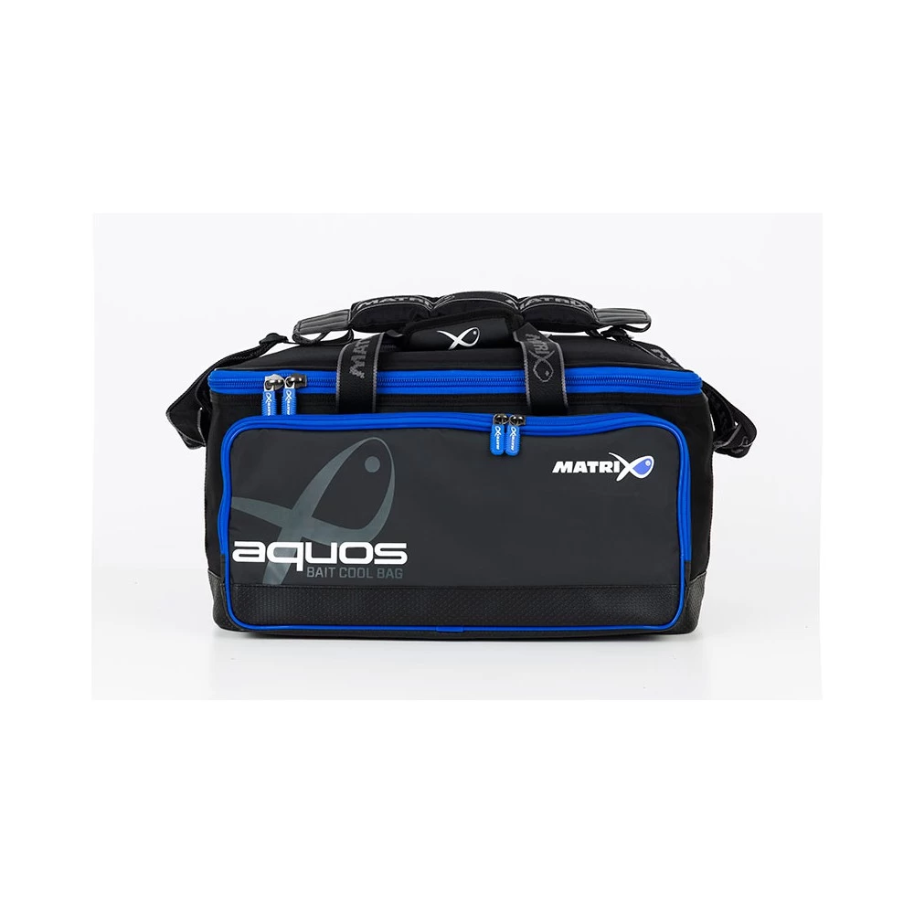 Matrix AQUOS Bait Cool Bag, deze Bait Cool Bag heeft een hoofdvak met ruimte voor maximaal 6 large bait tubs, hoofdcompartiment met folie gevoerd. Buitenvak is ideaal voor bewaren additieven en haakaas, zeer sterke, extra grote ritsen op alle vakken, verstelbare schouderriem en handgreep. Gemaakt van duurzaam 600D polyester met PVC achterkant. Buitenzijde: 100% polyester, voering 55% polyester en 45% PVC. Vulling: 95% polyethyleen, 5% polyurethaan. Onderzijde: 100% polyvinylchloride (PVC).