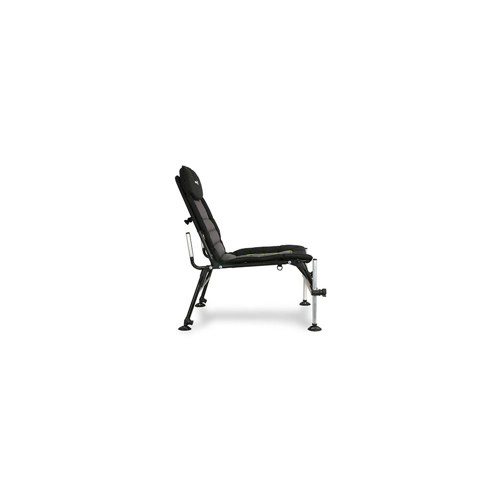 Luxe stoel met dikke voering, Voor het vissen met de feeder of dobber, Lichtgewicht aluminium/staal constructie, 25mm aluminium poten voor alle 3D accessoires, Afneembare pootverlengers aan de achterzijde, Bewaarvak voor pootverlengers, Plat op de vouwen voor gemakkelijk transport, Geleverd met draagriem, Buitenzijde 100% polyester, Vulling/voering: 100% polyurethaan, Hoge rugleuning voor extra comfort.