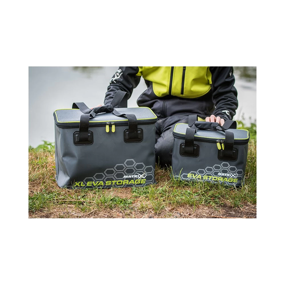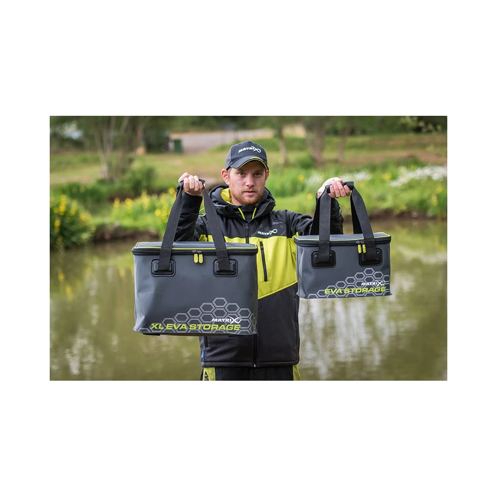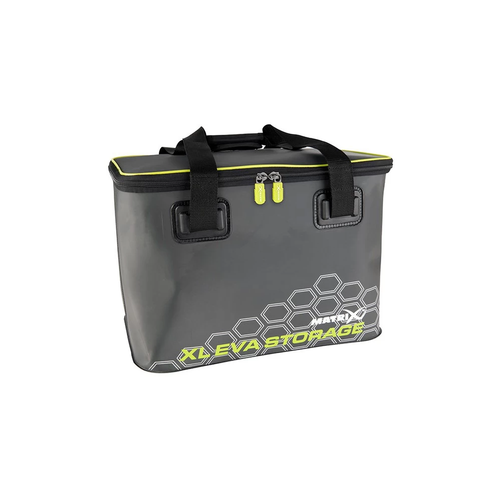 Matrix EVA XL Storage Bag, ideaal voor het bewaren van grotere items, Gemaakt van duurzaam EVA materiaal, Hitte-gesealde waterdichte naden, Grote robuuste Matrix rits pullers, Extra grote ritsen voor extra sterkte, Gegoten ‘voeten’ op onderkant voorkomen slijtage, Gemakkelijk te reinigen, Webbing handgrepen. Verkrijgbaar in Standard en X Large.