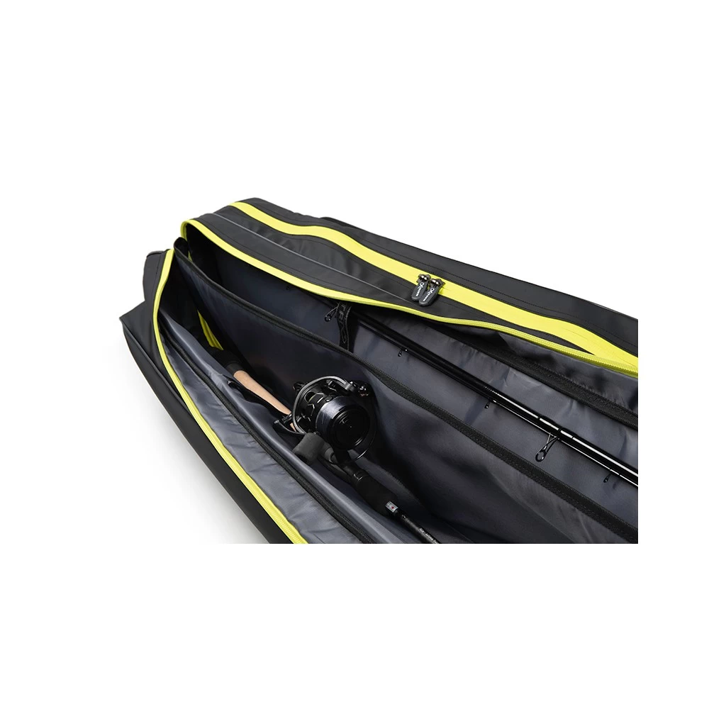 Matrix HORIZON Rigid Pole Holdall 2-4, is de ultieme High-end Luggage voor de moderne wedstrijdvisser. Ontworpen als volledig systeem voor de feedervisserij. Twee grote hoofdcompartimenten met gevoerde verdelers en hengelbevestigingspunten. Elk compartiment is extra groot en biedt ruimte voor twee opgetuigde hengels (maximaal 4 hengels in totaal). Groot buitenvak voor bewaren van schepnetstelen, lange items of een brolly. Gegoten EVA vak biedt bescherming voor veilig opslaan van extra feeder tips. Voorzien van PVC coating voor extreme waterdichtheid en duurzaamheid. Case van stijf PE board biedt bescherming aan de hengels tijdens transport. Hoogwaardige, waterdicht ritsen met PU coating. Twee neopreen handgrepen en extra gevoerde schouderriem.