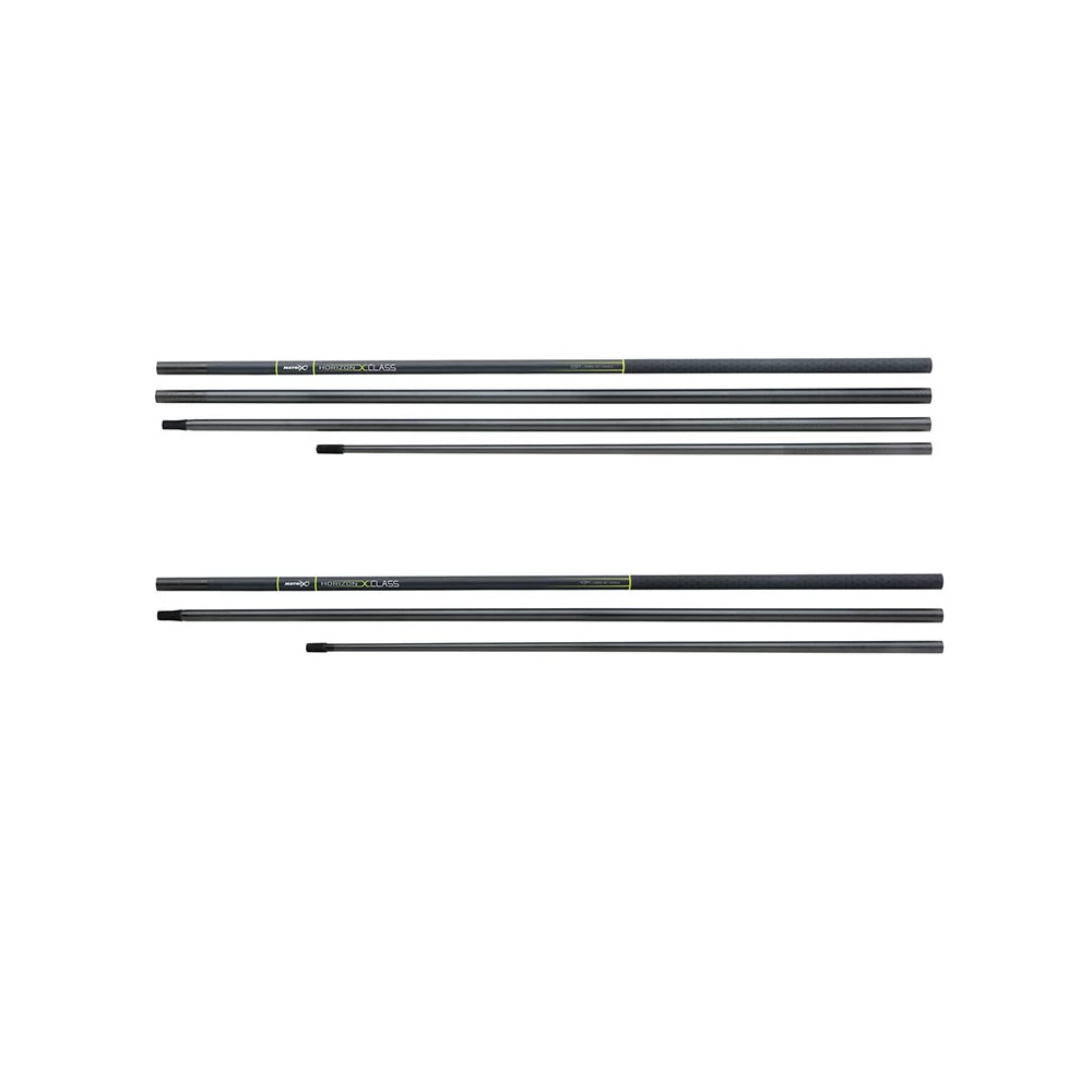 Matrix Horizon X Class Net Handles 5.5 Meter, zijn gemaakt van ultrasterk high modulus carbon dat zeer licht van gewicht is. De Matrix Horizon X Class schepnetsteel beschikt over een messing schroefdraad met nikkel coating. Unieke rubberen handgreep met dual schroefdraad systeem. De 4 meter steel kan worden gebruikt in lengtes van 2,8m en 4m. De 5,5 meter steel kan worden gebruikt in de lengtes van 2,8m, 4m en 5,5m. Ook wordt de Fox Matrix Horizon X Class Net Handle geleverd in een kunststofkoker.