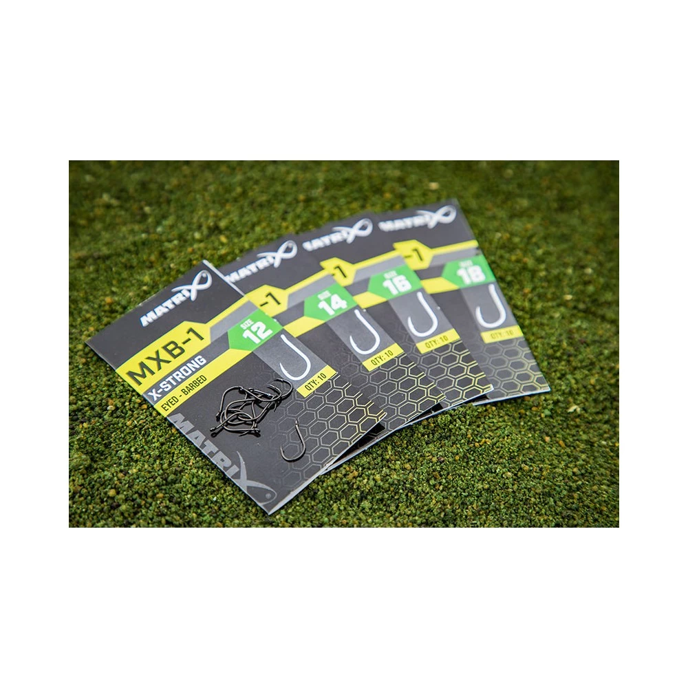 Matrix MXB-1 X-Strong Eyed Barbed Hook Size 14, deze zijn gebaseerd op onze populaire Feeder Rigger haken en vervolgens verder ontwikkeld tot de MXB-1. Het naar buiten staande oog is perfect voor de hair rig en de superscherpe punten zijn ongelofelijk effectief tijdens het vissen op karper, barbeel, brasem en andere grote vissen. Extra sterke haak met weerhaak en naar buiten staand oog. Ideaal voor maden, blikmaïs en boterhamworst op een Hair Rig, zeer sterk en duurzaam, perfect voor grote vissen. Verkrijgbaar in de maten: 12 – 14 – 16 – 18.