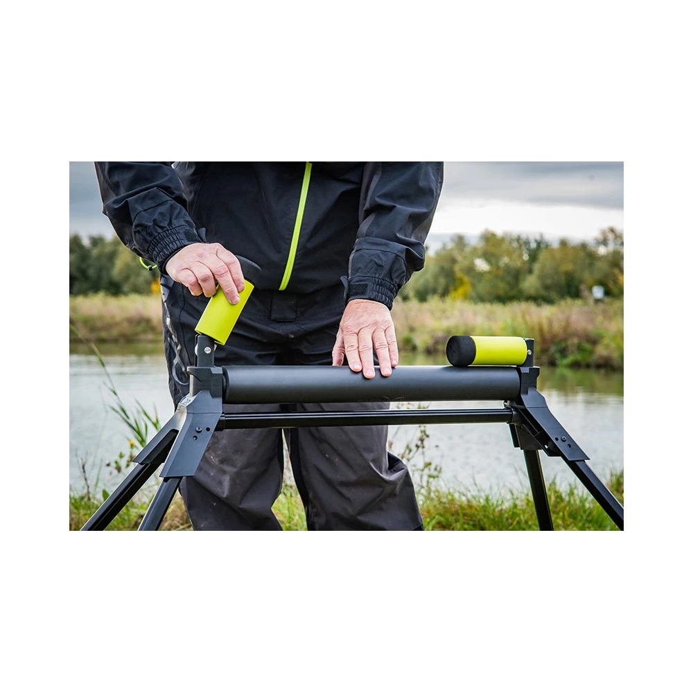 Verkrijgbaar in twee formaten: Single en Double Compact Roller, Telescopische poten (maximale hoogte 670mm), Extra grote leg extrusions voor extra stabiliteit, Zachte EVA rollers, Gesealde roestvrijstalen lagers in hoofdrollers, Rechtop opvouwbaar met EVA caps voor extra bescherming, Compatibel met onze roller leg extensions, Geleverd in een duurzame draagtas. Single Roller: Totale breedte 740mm, Gewicht 2,6 kilo, Transportformaat: 740mm x 200mm. Double Roller: Totale breedte 840mm, Gewicht 3 kilo, Transportformaat: 840mm x 200mm.