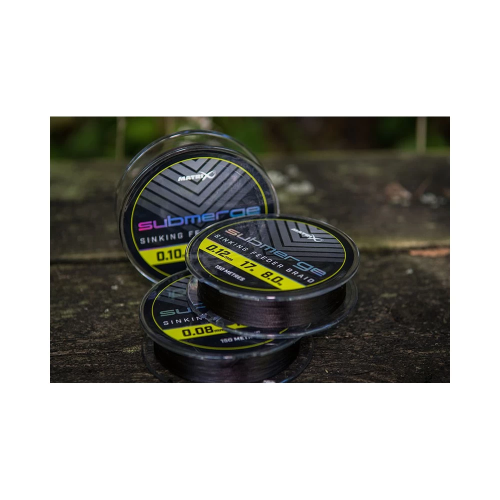 Matrix Submerge Sinking Feeder Braid 0.12 mm, heeft een zeer nauwkeurige diameter. Speciaal ontworpen voor het Feeder vissen en heeft ook een hoogwaardige, snel zinkende gevlochten lijn. Geen rek voor ultieme beetregistratie voorzien van super gladde coating. Hoge trekkracht op de knoop en zeer schuurbestendig. Verkrijgbaar in 0.08, 0.10 en 0.12 mm wordt geleverd op spoelen van 150 meter.
