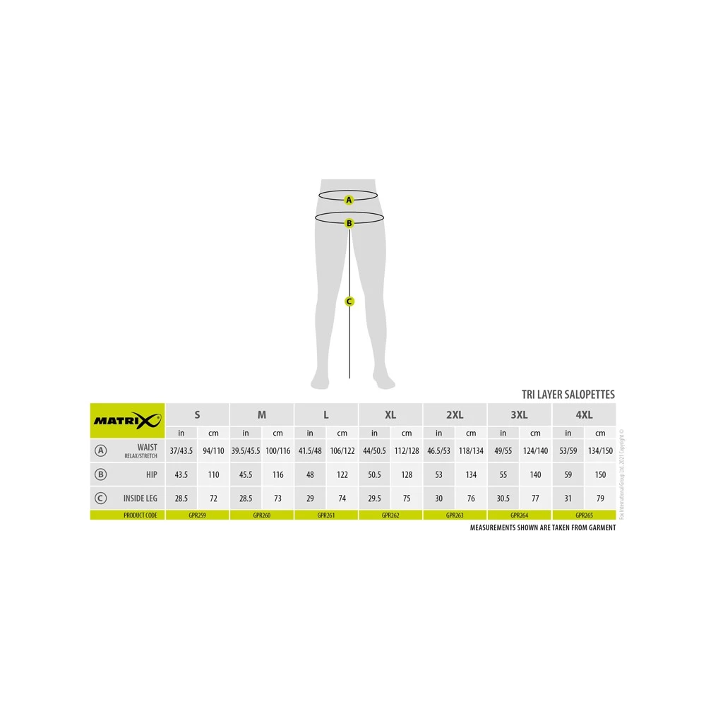 Matrix Tri Layer Salopettes 25K Large, deze Tri-Layer salopettes 25K zijn perfect voor wie droog en beschermd wil blijven terwijl hij vist. Met verstelbare schouderbanden goed elastische kan je er zeker van zijn dat ze comfortabel op hun plaats blijven over je schouders. Deze duurzame salopettes, hebben een versterkt, zeer slijtvast kniepaneel dat je beschermd. Waterbestendige stof met drielaags polyurethaan coating zorgt ervoor dat deze kleding zelfs de grootste stortbui of onderdompeling in een vijver kan weerstaan. De zakken zijn gevoerd met ritsen, zodat er altijd plaats is voor essentiële zaken als sleutels en portemonnee, terwijl ze toch volledig tegen regen beschermd zijn door het YKK merkbeslag, dat ervoor zorgt dat alle naden afgedicht zijn. Deze lichtgewicht salopettes zullen zelfs je moeilijkste visavonturen draaglijk maken. 25000mm waterdichtheid, 3000gr/m2 ademend, Alle buitenste ritsen zijn van YKK en waterdicht.