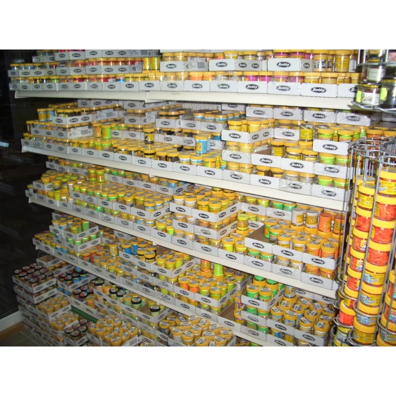 Berkley Powerbait – Troutbait Fruit Range Chunky Cherry, is het beste foreldeeg en al jarenlang forelaas nummer één. Maak van het troutdeeg met je hand of een deegvormer een schoepje en plaats dit op de haak. Hier door draait het foreldeeg tijdens het binnen halen en wordt de forel al snel getriggerd. Foreldeeg, of ook wel Trout bait is verkrijgbaar in veel verschillende kleuren, geuren en smaken. Het kiezen van kleuren is vaak erg lastig, over het algemeen kiest men bij troebel water een zeer felle kleur en bij helder water juist een natuurlijke kleur. Uiteraard gaat deze regel niet altijd op en is het altijd verstandig verschillende soorten mee te nemen naar de waterkant zodat je kunt variëren.