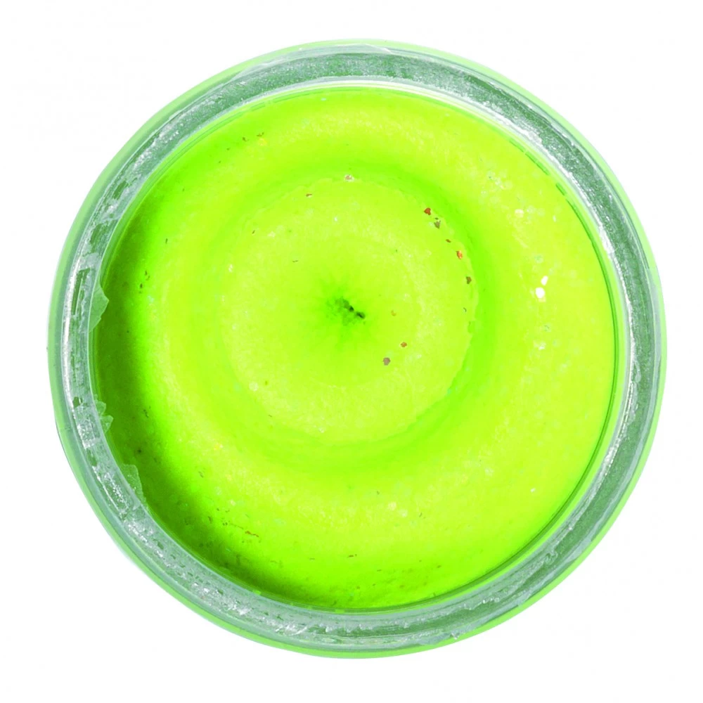 Berkley Powerbait – Troutbait Garlic Chartreuse, is het beste foreldeeg en al jarenlang forelaas nummer één. Maak van het troutdeeg met je hand of een deegvormer een schoepje en plaats dit op de haak. Hier door draait het foreldeeg tijdens het binnen halen en wordt de forel al snel getriggerd. Foreldeeg, of ook wel Trout bait is verkrijgbaar in veel verschillende kleuren, geuren en smaken. Het kiezen van kleuren is vaak erg lastig, over het algemeen kiest men bij troebel water een zeer felle kleur en bij helder water juist een natuurlijke kleur. Uiteraard gaat deze regel niet altijd op en is het altijd verstandig verschillende soorten mee te nemen naar de waterkant zodat je kunt variëren.
