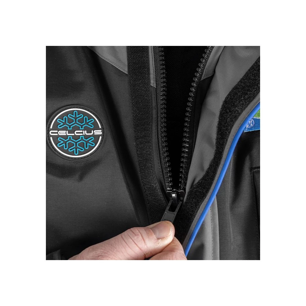 Preston Celsius Suit Medium, is geheel waterdicht en bijzonder warm om dragen. De Preston Celsius Range is de warmste viskleding die je ooit hebt gezien of nodig hebt. Gemaakt van topkwaliteit materiaal is de extreem duurzame Celsius Range ontworpen om te vissen onder de koudste omstandigheden. De thermische ‘Hollofil’ voering houdt de lichaamswarmte bijzonder goed vast, maar verhindert de bewegingsvrijheid niet. De Celsius is in feite zo warm dat je slechts een minimum aan onderkleding nodig hebt. Combineer het driekwart lange jack met de Bib & Brace en je hebt de ultieme combinatie voor koude omstandigheden. 10.000 Waterproof, Windproof en Thermal.
