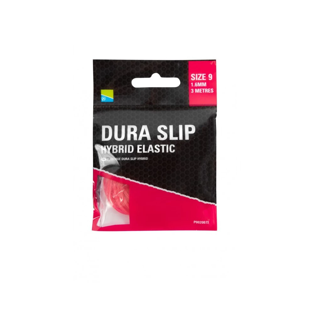 Preston Dura Slip Hybrid Elastic Red Size 15, deze Dura Slip Hybrid is de allernieuwste aanvulling op het al bestaande assortiment Preston Elastiek. Het combineert het beste van Hollo en de massieve elastiek, met als eigenschappen, een hoge rek, vrij kleine diameter, fluoriserende kleuren en een hoge duurzaamheid. De Preston Dura Slip Hybrid Elastiek is al voorzien van Slip Lubricant waar door deze super glad en al heel soepel is. Dit alles maakt het een elastiek bij uitstek voor de visserij op commercials, maar het is ook prima in te zetten bij de normale visserij.