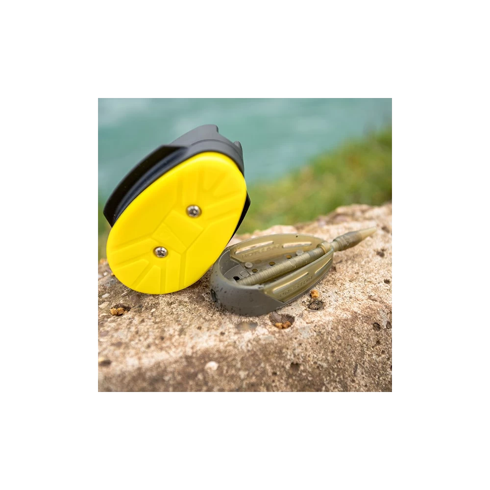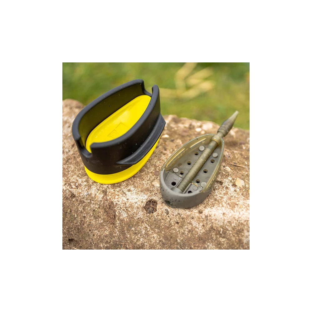 Preston ICS Banjo XR Mould Large, je kan er zeker van zijn dat je steeds de juiste hoeveelheid voer gebruikt, voeg simpelweg pellets of lokvoer toe bovenop de mal, plaats de Banjo XR voerkorf en druk het geheel samen gebruik makend van de twee ‘vleugels’ aan de zijkant van de mal. Druk op de knop op de bodem om de voerkorf los te maken en het voer zal perfect samengedrukt zijn en de voerkorf gereed om geworpen te worden. Beschikbaar in small, medium en large, waarmee ze overeen komen met de bijpassende formaten van de Banjo XR Feeder korven.Â