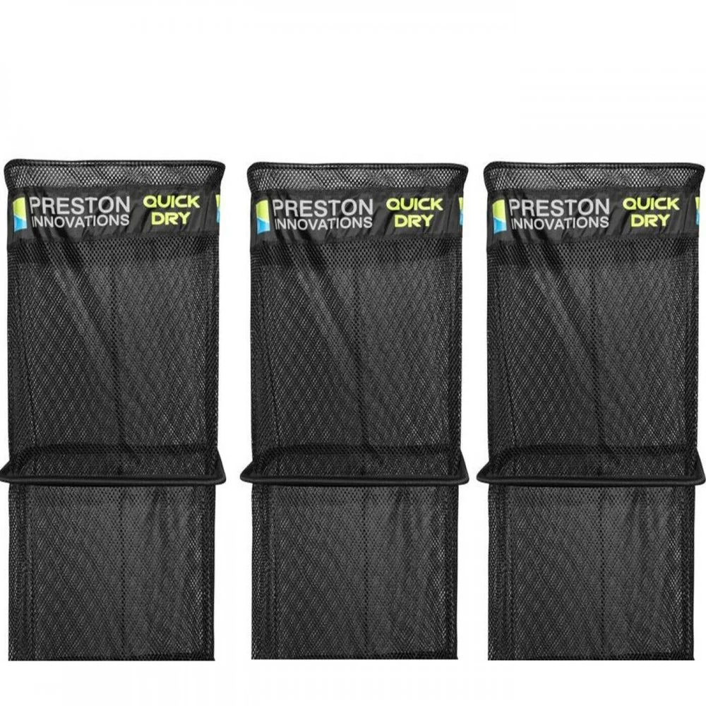 Preston Quick Dry keepnet 4.0 Meter, dit keepnet heeft de eigenschappen van een snel drogend net materiaal gemaakt te zijn. Voorzien van het bekende Fix Angle systeem om het net mee vast te zetten. Door middel van een leefnetsteun met een Quick Lock Adapter is het keepnet eenvoudig aan je zitkist te bevestigen. Door we steeds meer vis gaan vangen op de commerciële vijvers, en de strenge regels voor een maximaal gewicht per net heb je dus op relatief weinig plek steeds meer netten nodig. Wij hebben hier voor een kant en klare, ruimte besparende oplossing gevonden. Deze unieke opstelling maakt ook een eenvoudig transport van vis van het schepnet naar het leefnet mogelijk. Deze leefnetten nemen weinig plaats in tijdens het transport.