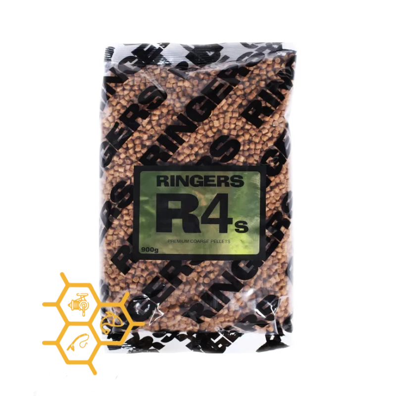 Ringers Premium Coarse Pellets R4s 4 mm, zijn gemaakt van vismelen van hoge kwaliteit, en moeten zeker voor geweekt worden voor het beste resultaat. In Engeland heeft geen enkele aas soort zo een grote impact gehad als deze pellets. De pellets zijn er in Engeland verantwoordelijk voor dat er door de competitievissers amper nog met wormen en casters gevist wordt. Het weken van de pellets gedurende korte tijd heeft als gevolg dat de pellets sponzig worden. Je kan de pellets puur voeren in een voer korf, cuppen met de vaste stok, of simpelweg toevoegen aan het grondvoer dat je gebruikt om de vis aan het azen te houden gedurende een aantal uren.