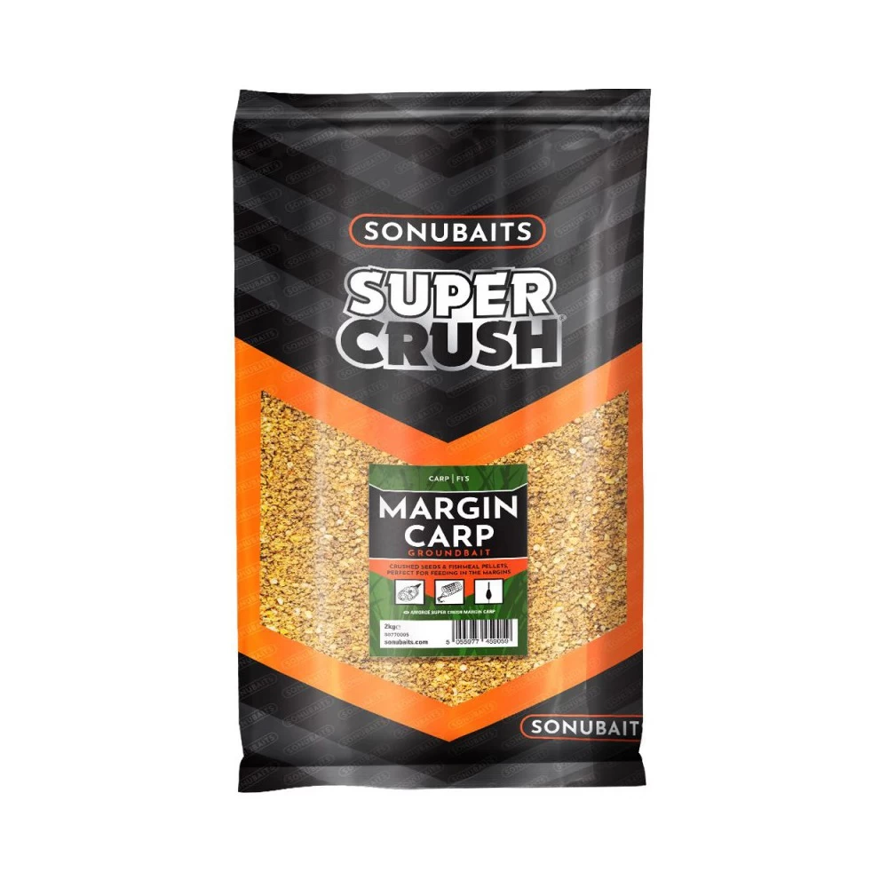 Sonubaits Super Crush Margin Carp, gemaakt om de ideale voederplek aan te leggen op plaatsen waar de vis zich concentreert. Om de ideale voor plek te bekomen is een goede mix nodig met losse deeltjes zodat deze zich niet snel verplaatsen. Sonubaits Margin Carp is gemaakt van gemalen zaden en vismeel pellets om voor de nodige attractie te zorgen, maar toch zwaar genoeg is om op deze plaats te blijven liggen. De Margin Carp is vrij neutraal van kleur met daar in kleine gekleurde stukjes gemengd om de interesse van de karper op te wekken. Deze Margin Carp mix kan ook goed gebruikt worden op te cuppen, van een zekere hoogte maakt het voer met losse deeltjes een zeer aantrekkelijk geluid in het water voor de vissen. Verpakt in een hersluitbare 2 kilo zak.